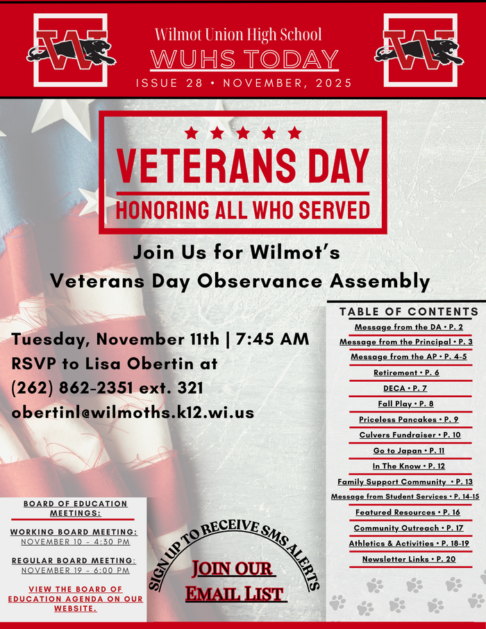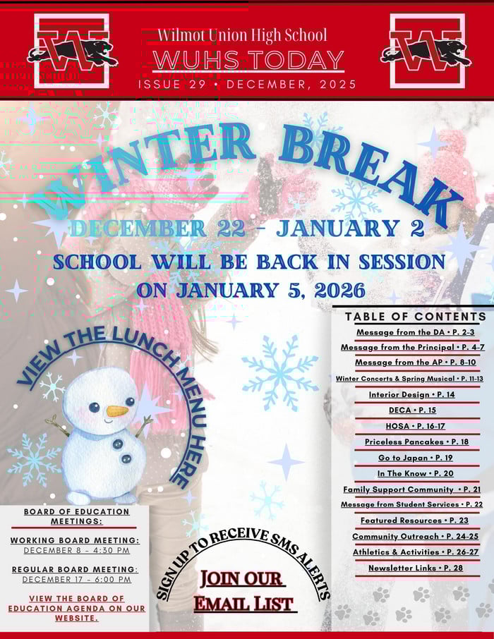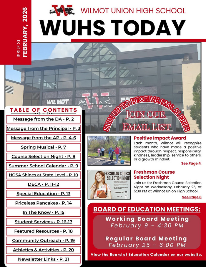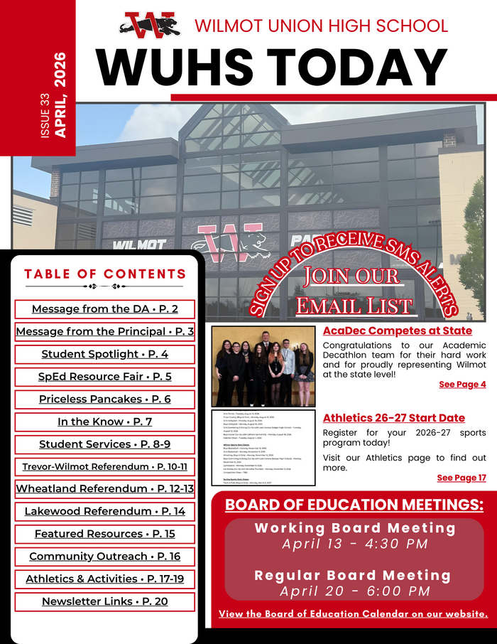 Stay informed and connected with Wilmot Union High School through our monthly newsletters and Parent...